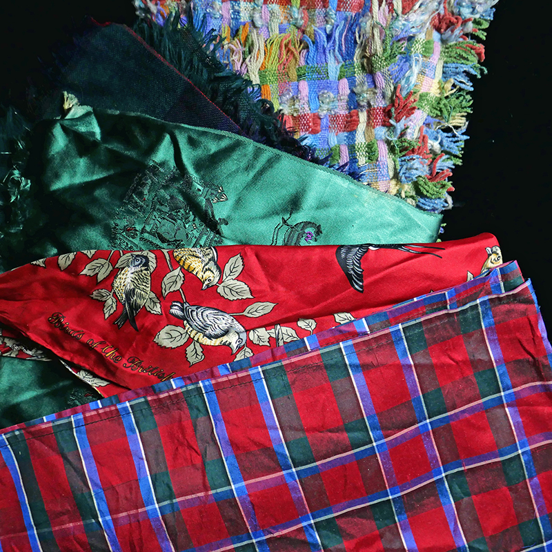 Images from my handed down scarf collection. (Difficult to iron after being stored poorly!)