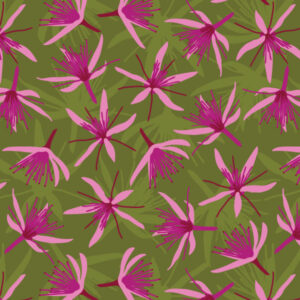 Rainbow Lorikeets amongst lush Australian native flowers are bright, bold – and so full of joy! This repeat pattern is based on original watercolour artwork by Nadya Neklioudova. Perfect for unique dresses or homewares that make a nature-loving statement. Scale:…