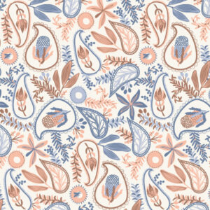 Non-directional paisley print featuring Australian native flowers and plants in dusty blue and earthy tones. Shapes are sized between approximately 1 to 3 inches. Design printed on high quality fabric, please pick your fabric base in the drop-down menu below….