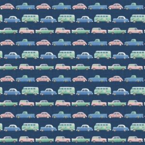 This denim blue version evokes road trip memories and childhood play, with soft-toned vehicles lined up in charming rows. Ideal for boys’ room accents, casual apparel, or whimsical quilting. Motifs are approximately 3.5-4cm each in width. Design printed on high quality…