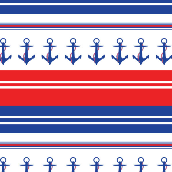 Blue, Red and White anchor stripe fabric design perfect for your nautical inspired creation. Design printed on high quality fabric, please pick your fabric base in the drop-down menu below. Fabric is measured, cut and sold by the metre.