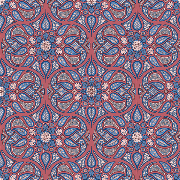 A cute paisley design that is fun and bright. This design was to stand out to any inspired bohemian inspired individual. This print was designed in mind for a fun summer dress or a cute tote bag. Featuring shades of Blue, Pink and Red.