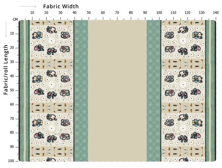 Scarf panel measures 31 × 140 cm. You can fit 3 full scarf panels within 1 metre of fabric.