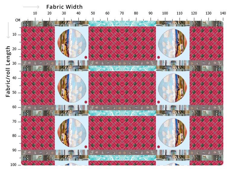 Scarf panel measures 31 × 140 cm. You can fit 3 full scarf panels within 1 metre of fabric.